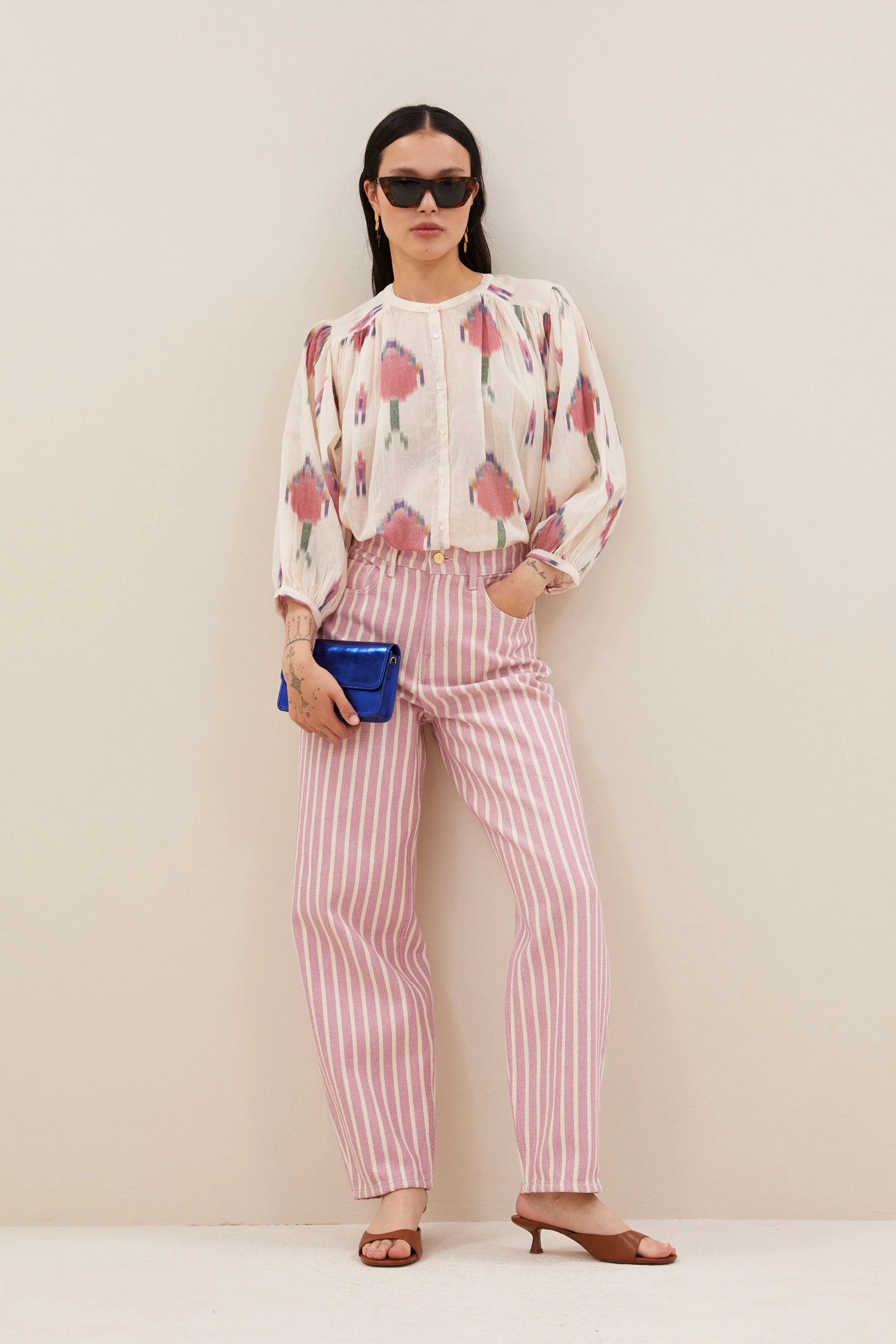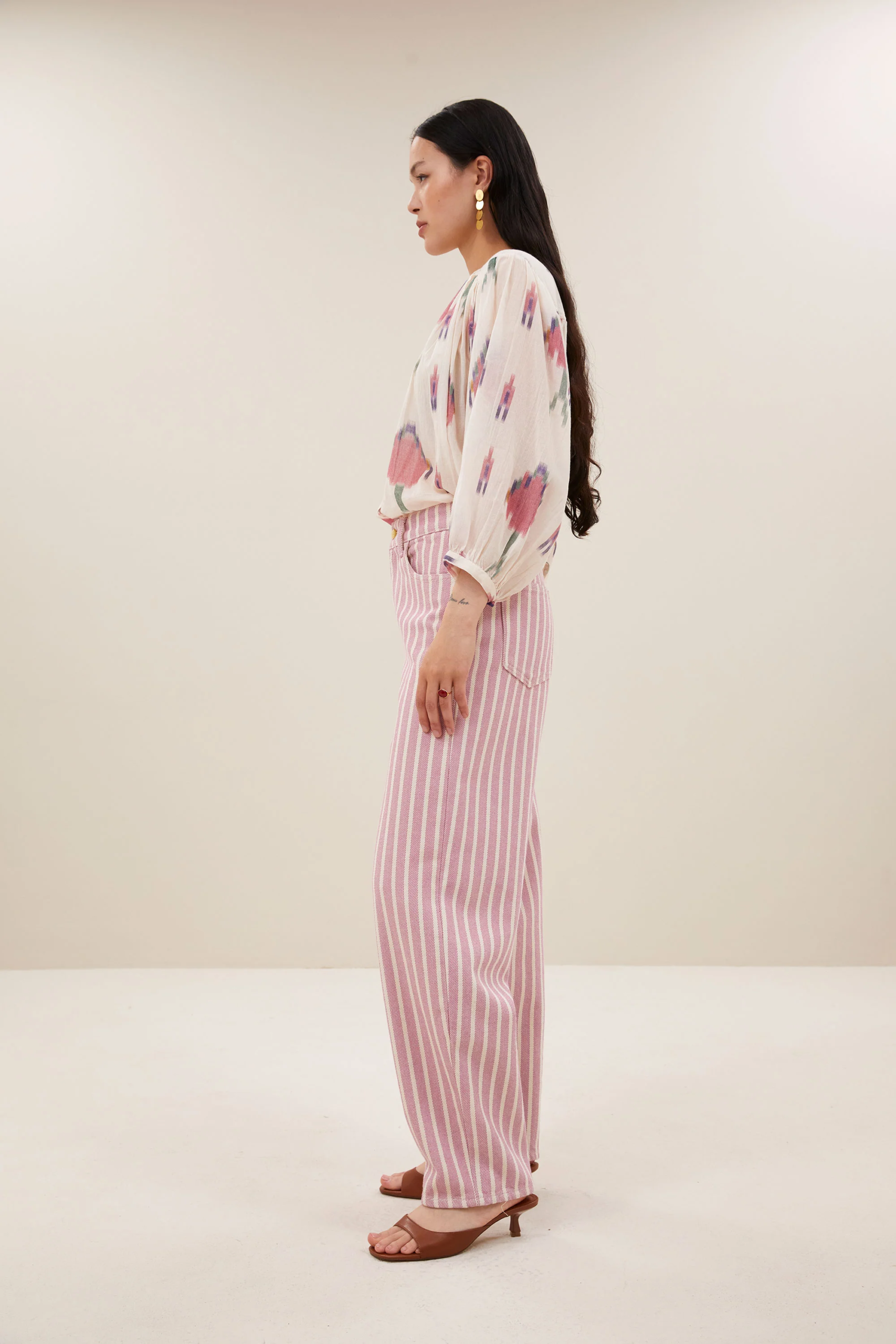 By-bar Lew Rocky Jeans in pink. Absolute Lieblingshose mit angesagten Streifen. Hoher Bund. Leicht weiteres Bein. Lässt sich wunderbar kombinieren.