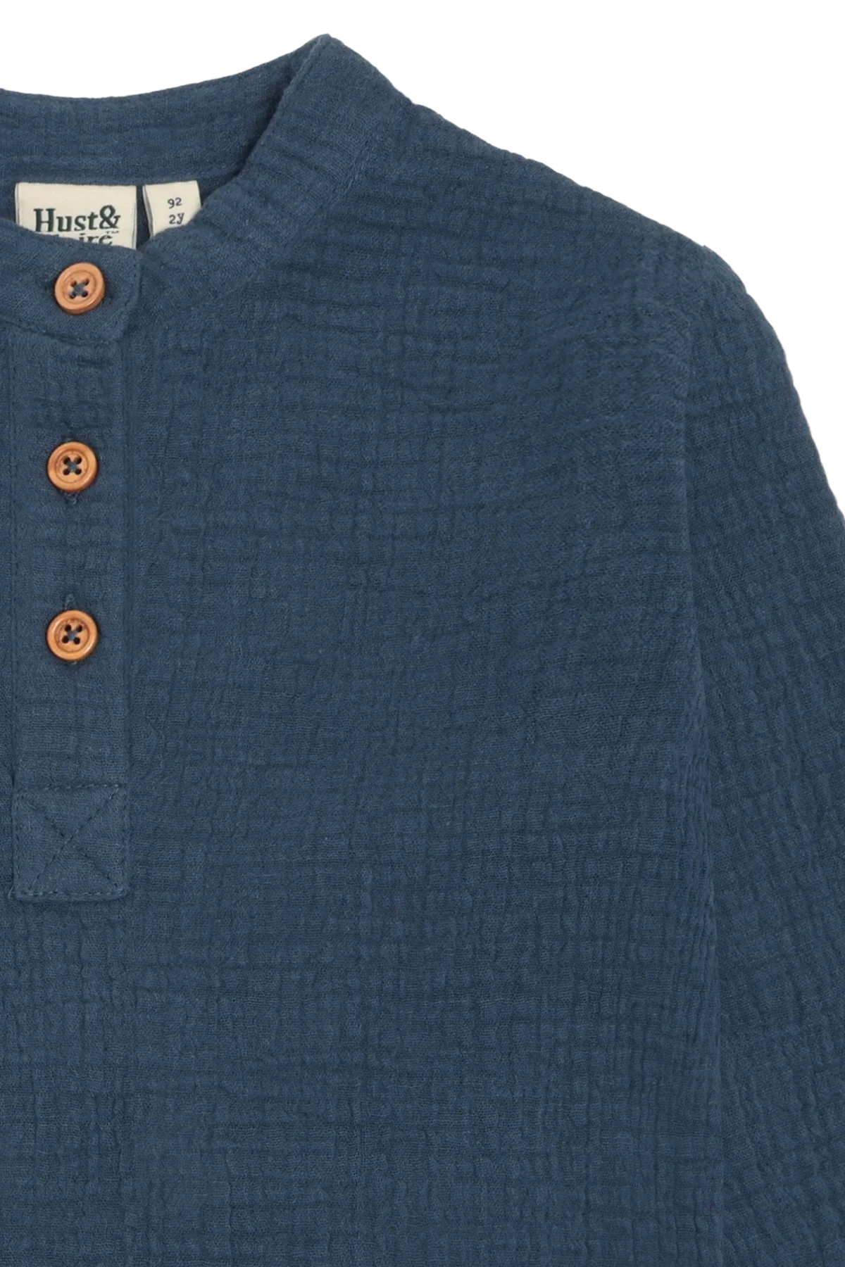 Hust and Claire Musselinhemd Rasser dunkelblau. Weiches Musselinhemd mit langem Arm. Obere Knopfleiste. Passend dazu gibt es auch eine Musselin-Shorts.