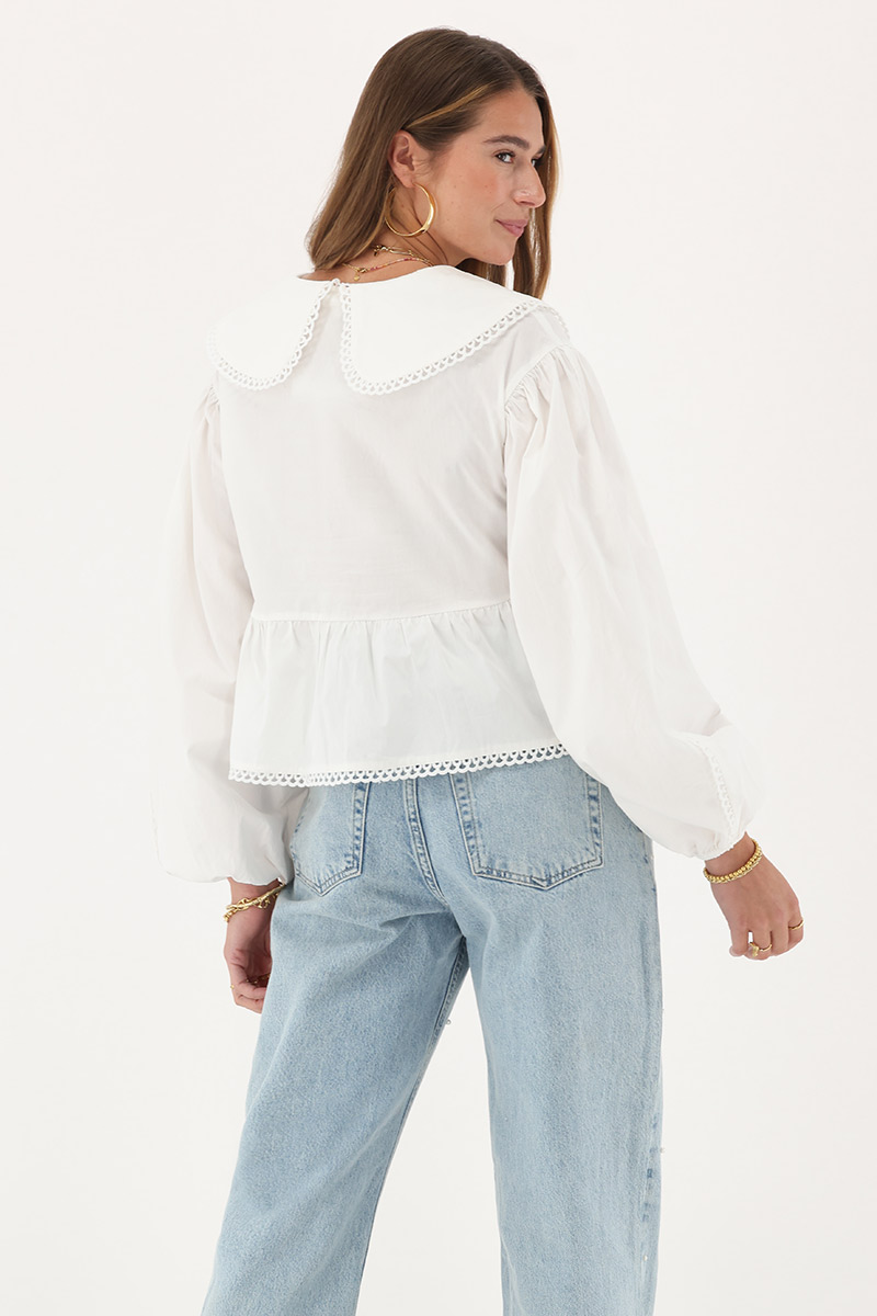 My Jewellery Bluse weiß mit Kragen. Bluse aus 100% Bio-Baumwolle. Zum Knöpfen. Kleine Schleife.